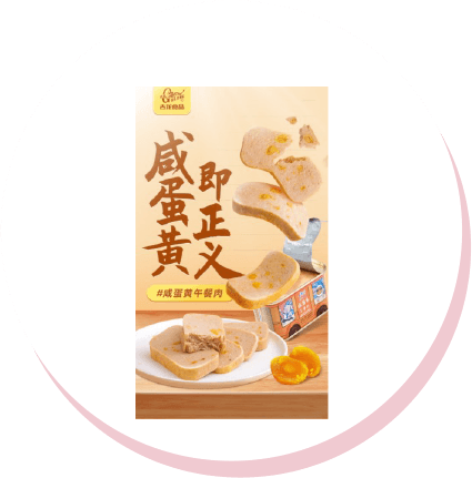 | 利用咸蛋黃創(chuàng)新性的降低了傳統(tǒng)午餐肉的含鈉量,更為健康。中式餐飲的代表食材咸蛋黃與傳統(tǒng)西式食品午餐肉的結(jié)合,帶來更豐富的口感,更絕妙的風(fēng)味,更健康的營養(yǎng)搭配。 |
