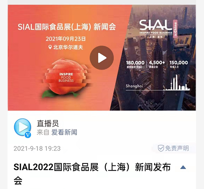 9月23日,法國(guó)高美艾博展覽集團(tuán)和北京愛(ài)博西雅展覽有限公司在北京華爾道夫酒店召開(kāi)新聞發(fā)布會(huì),并宣布SIAL 2022 國(guó)際食品展(上海)將于老時(shí)間、老地點(diǎn)-2022年5月18日-20日在中國(guó)上海新國(guó)際博覽中心舉行。截止9月27日,該新聞發(fā)布會(huì)的相關(guān)信息及展會(huì)新聞獲得100多家媒體轉(zhuǎn)發(fā),僅新華社單篇報(bào)道就獲得了超100萬(wàn)瀏覽量,全網(wǎng)直播觀看人數(shù)超200萬(wàn),引爆網(wǎng)絡(luò)成現(xiàn)象級(jí)食品展。