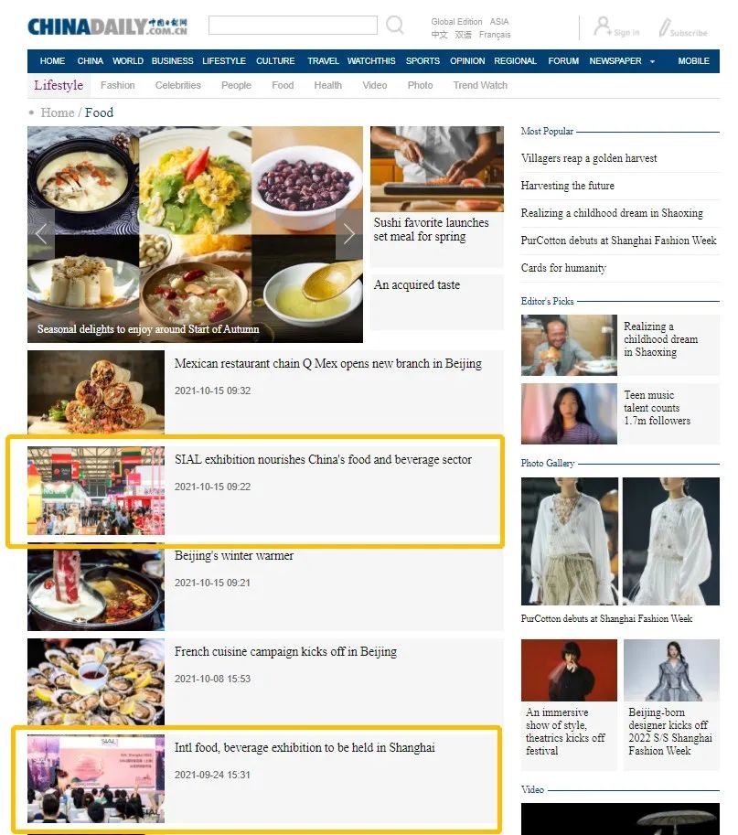 SIAL 2022國際食品展新聞發(fā)布會獲得了China Daily官網(wǎng)頻繁報道