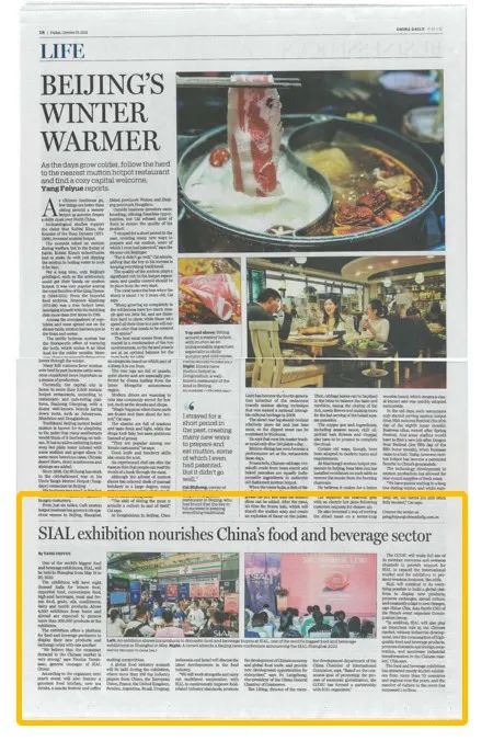 China Daily報紙對SIAL 2022 國際食品展新聞發(fā)布會進行了大版面的報道