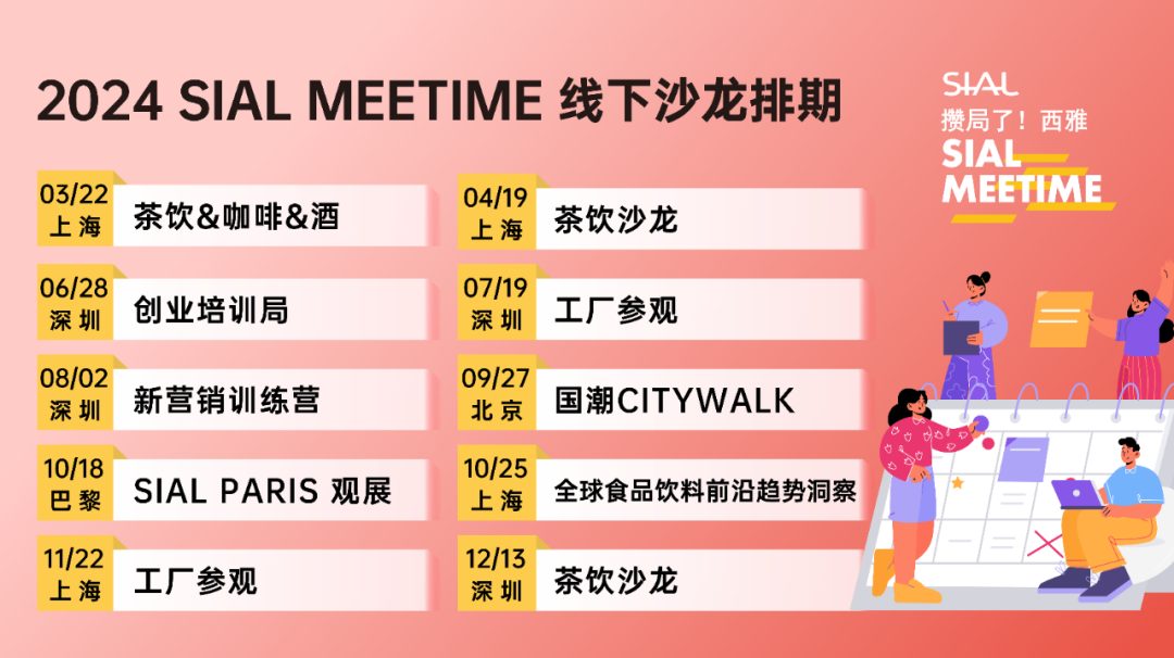 2024 SIAL Meetime 攢局了!西雅,將深耕食飲行業(yè)幾大熱門板塊,圍繞食飲人聚焦話題深度探討。召集食飲伙伴、精英群體拓建合作關系,結識商業(yè)人脈,把握風口機遇,以更高效能突出重圍,提高品牌聲量。