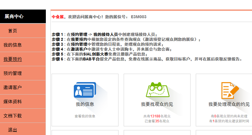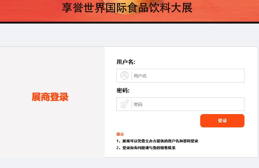 通過用戶名和密碼進入展商中心,