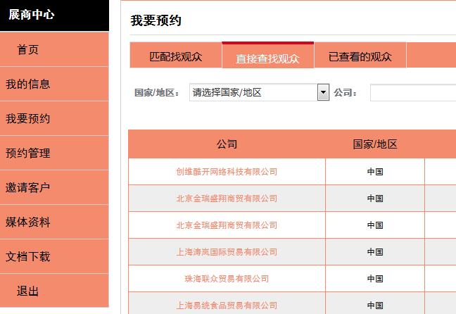通過登錄系統(tǒng)不僅可以提前預覽展商名單,還能提前預約心儀的觀眾于5月14至16日間的任何時段于中食展現(xiàn)場見面,快捷高效。